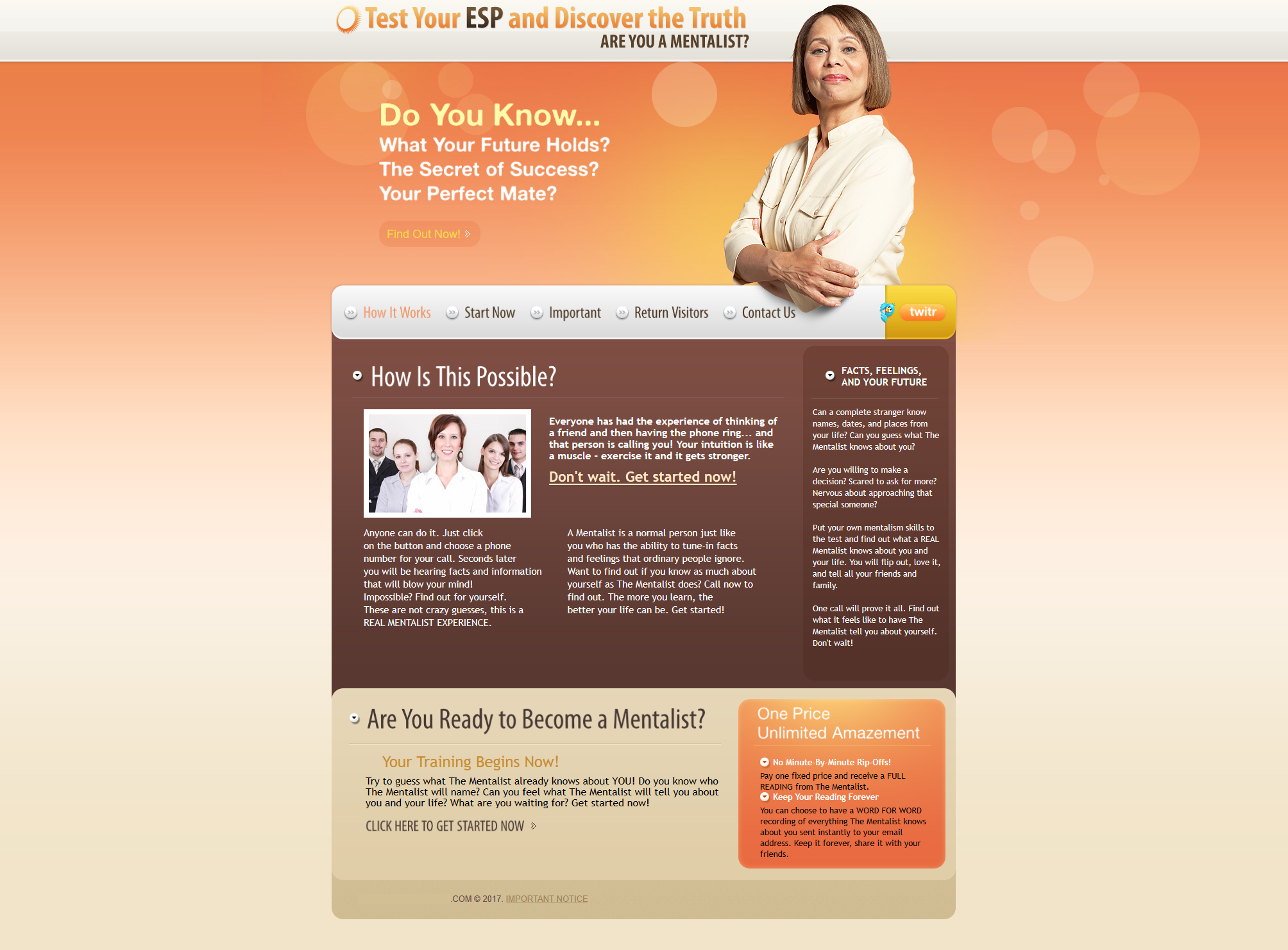 In 2011, Paul programmed a telephone entertainment service based around "ESP" and mentalism, where customers make and receive calls from an automated mentalist who can tell the caller surprise information, seek answers to questions, offer entertaining advice, and test the customer's own mentalism abilities.
